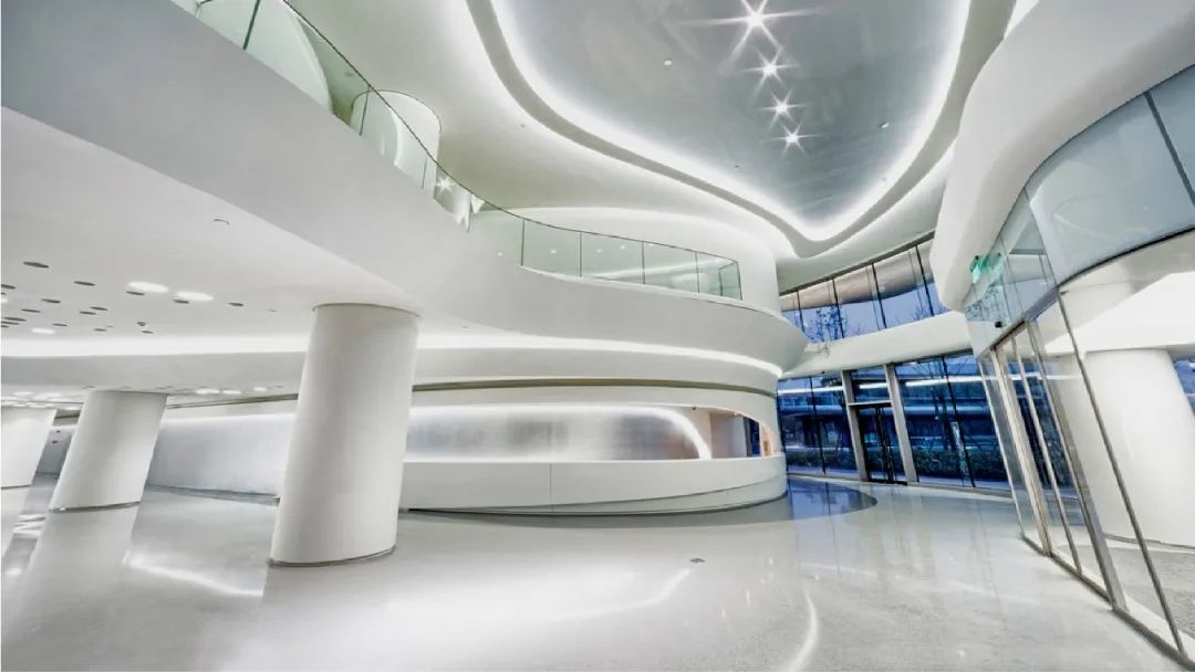 大面积整体无缝,艺术不被分割,减少藏污纳垢及噪音。利用分子高聚合物材料的韧性和低膨胀系数等特性,设计出可大面整体无缝的独特地面系统。