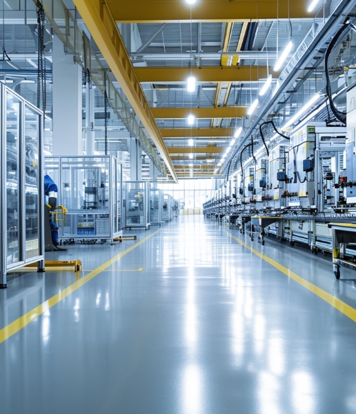 专用于工业厂房室内地面的环氧平涂型地坪系统,拥有较高的附着力和负载性, 并兼具强韧耐磨、平整光洁及成本经济等优点。